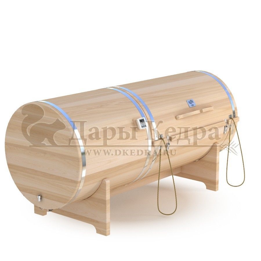 Горизонтальная двухрежимная фитобочка из кедра может быть использована как инфракрасная сауна и парная. Карбоновые излучатели отвечают за сухое парение и находятся на внутренней стороне дверцы. Влажное парение происходит за счет поступления горячего пара в фитобочку через паропровод. Горизонтальная форма позволяет принимать процедуры лежа. Внутренняя ручка из кедра облегчает открывание и закрывание двери во время парения. Такая модель наиболее удобна для оздоровительных центров.